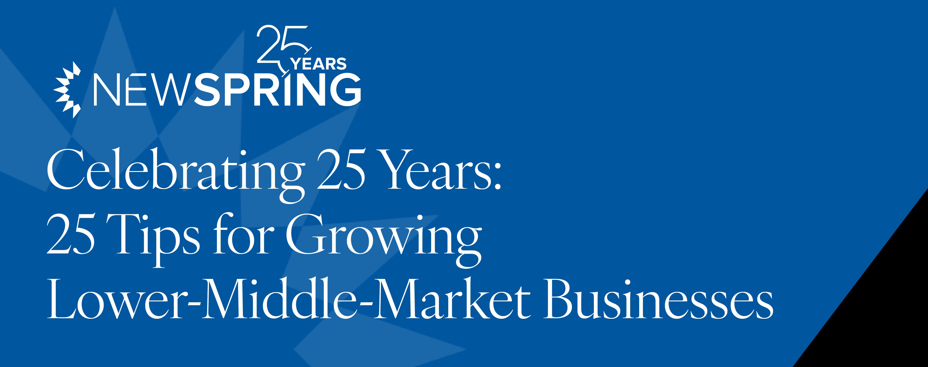 Thank you for joining us in celebrating NewSpring's 25 years of investment excellence. We hope the insights shared by our network of accomplished CEOs have inspired and equipped you with practical strategies for leadership and growth. Each piece of advice reflects deep industry knowledge and the spirit of entrepreneurship that NewSpring has always championed. Continue to visit our page weekly for more pearls of wisdom and explore further how NewSpring can help transform lower-middle market businesses.
